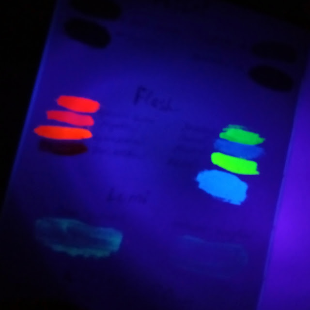 И всю линейку флуоресцентных красок. Обожаю всё светящееся в темноте и под ультрафиолетом, потому к заказу добавила и люминисцентные краски - LuxLumi желто-зеленая и LuxLumi небесно-голубая.